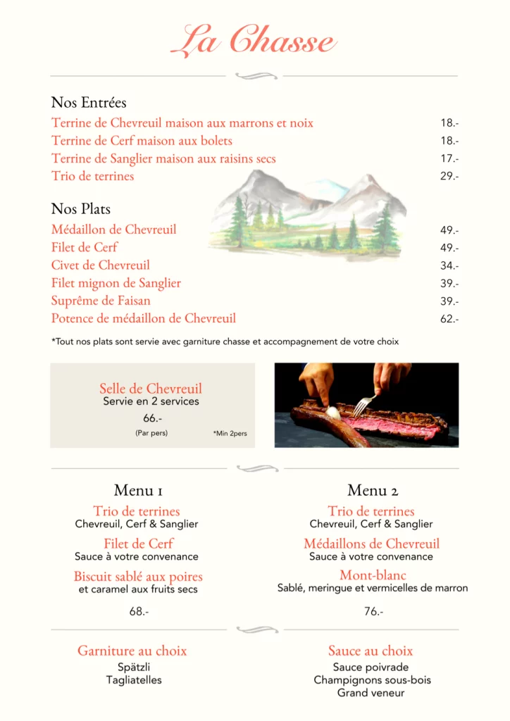 Servi en deux services, légumes de saison, sauce & garniture au choix